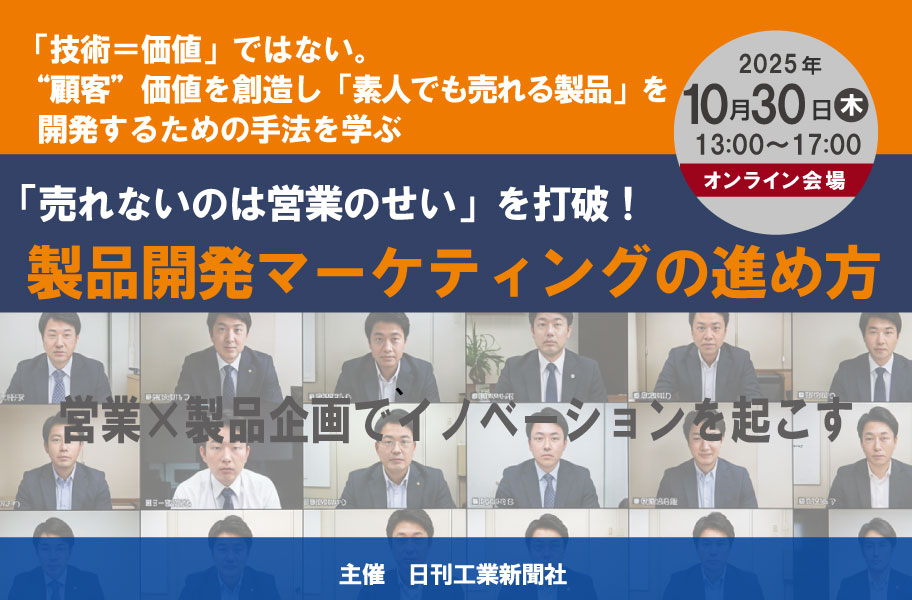 「自社の営業力に不満」のある製品開発・技術職の方。「営業力に依拠せず売れる製品」が開発できれば最高です。
